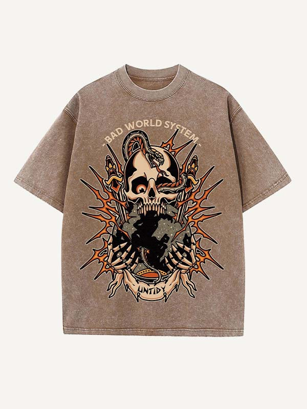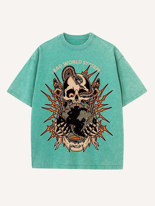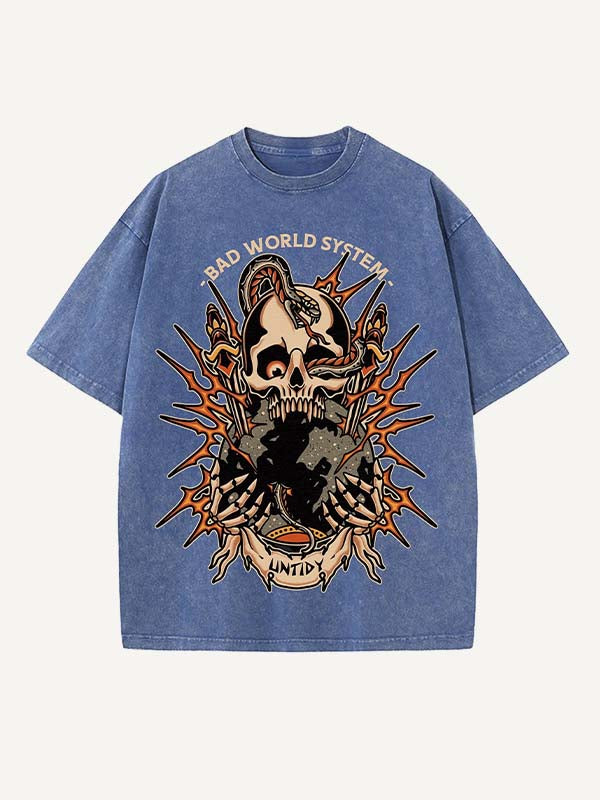 Distressed washes, tattoo-style prints, and relaxed street fit. Wear your darkness, own your truth 🖤.