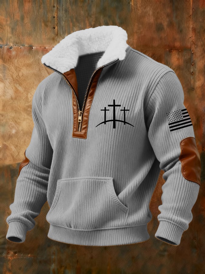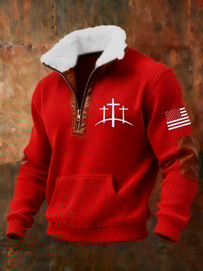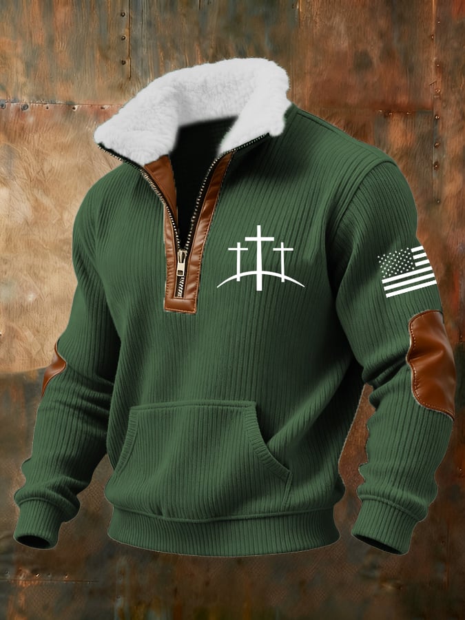 Men's Retro Faith Flag Design Casual Checkered Sweatshirt