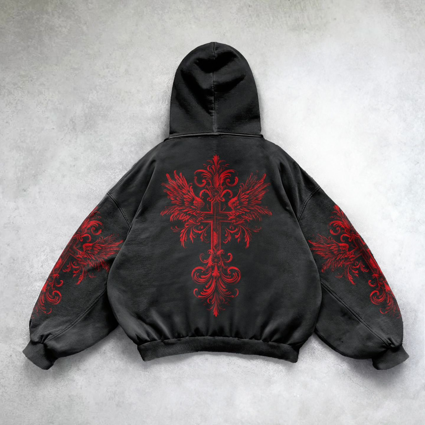 Cross Butterfly Mix Print Long Sleeve Hoodie