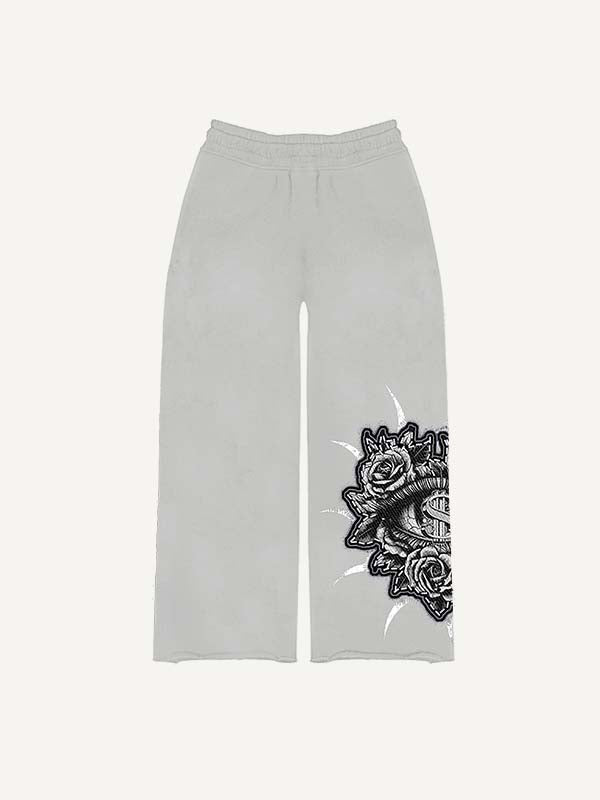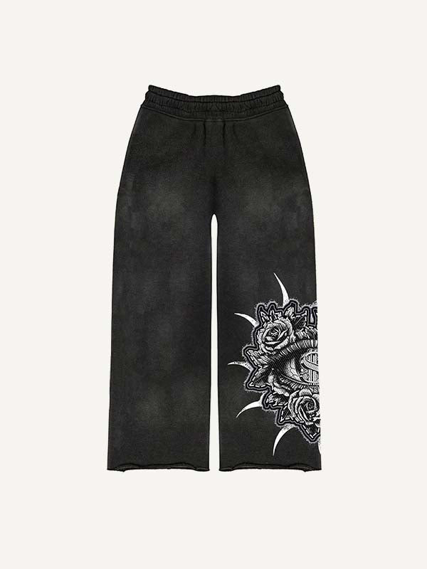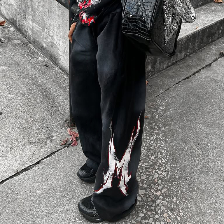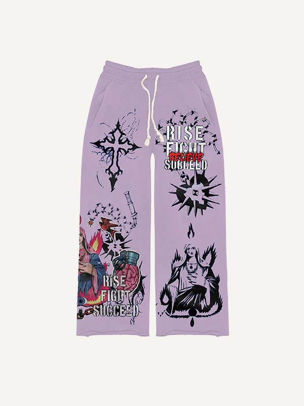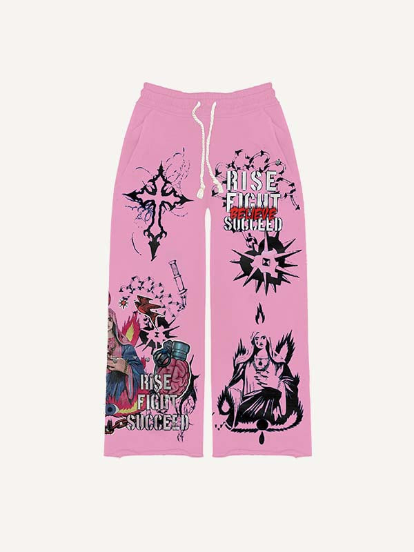 Cross&Letter Elastic Waist Pants