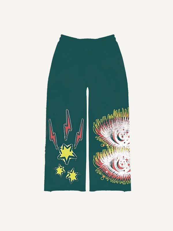 Cross&Letter Faux Decal Print Elastic Waist Pants