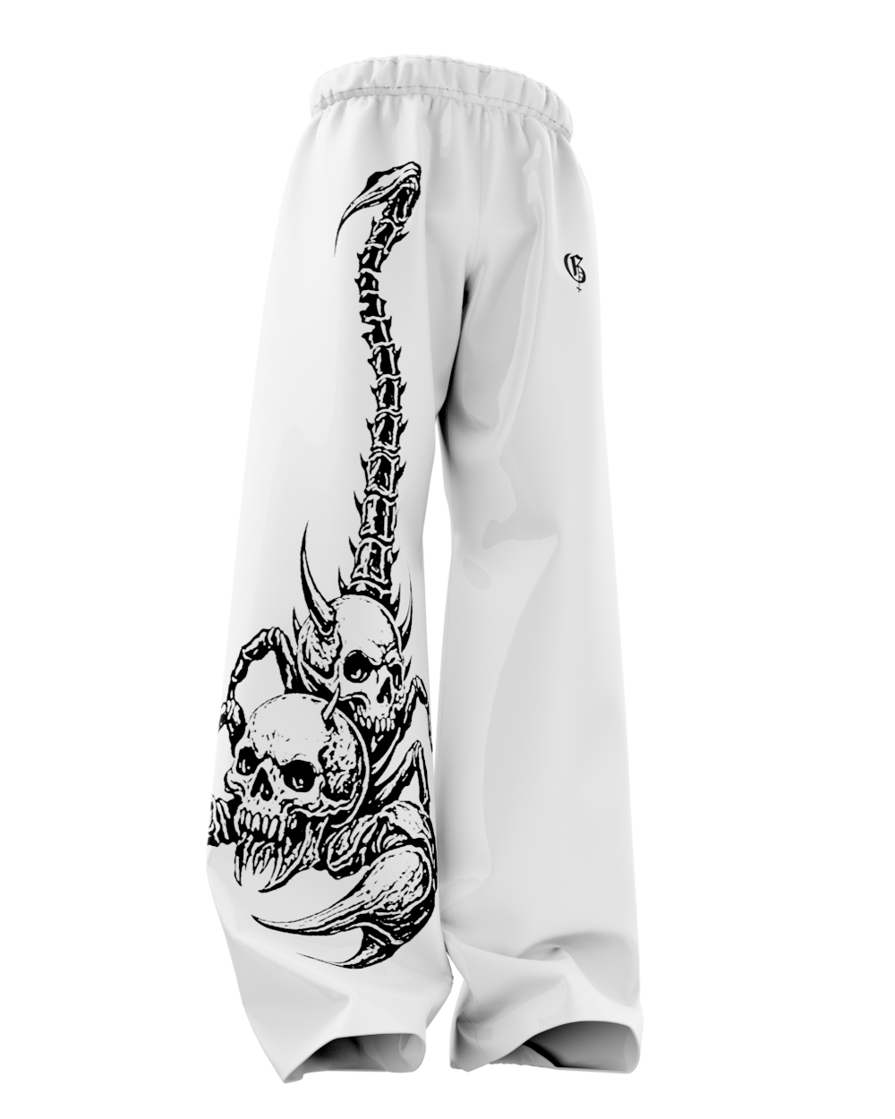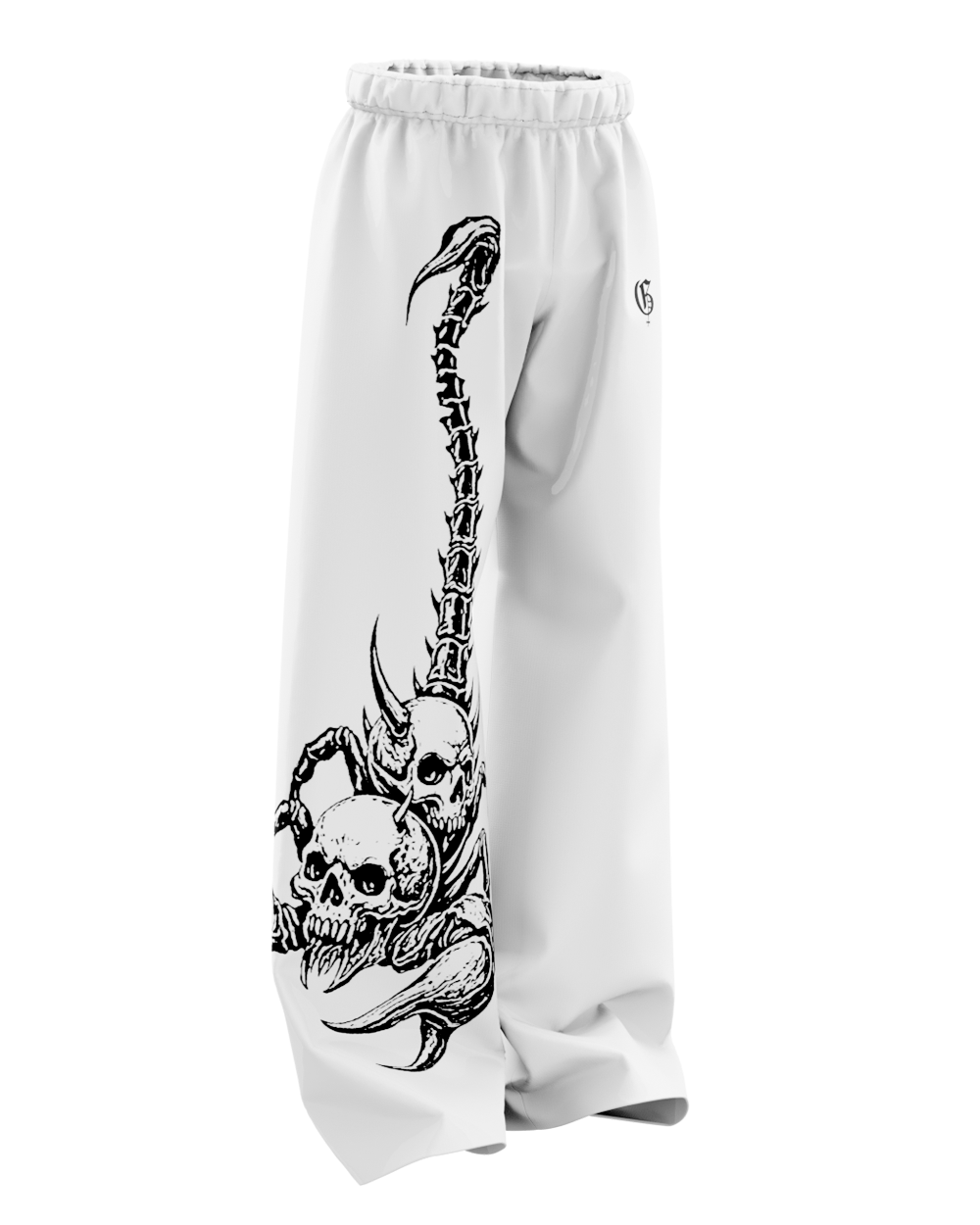 White Skullpion Unisex Straight Fit Baggy Pants