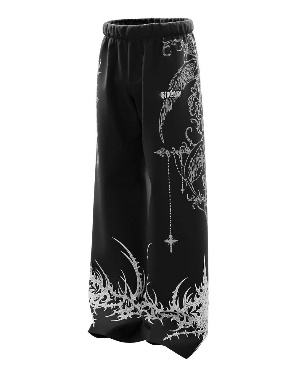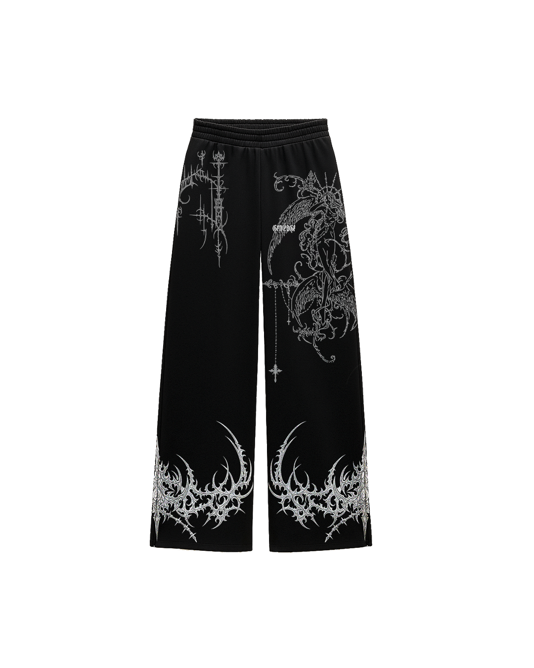Engrave Black Unisex Straight Fit Baggy Pants