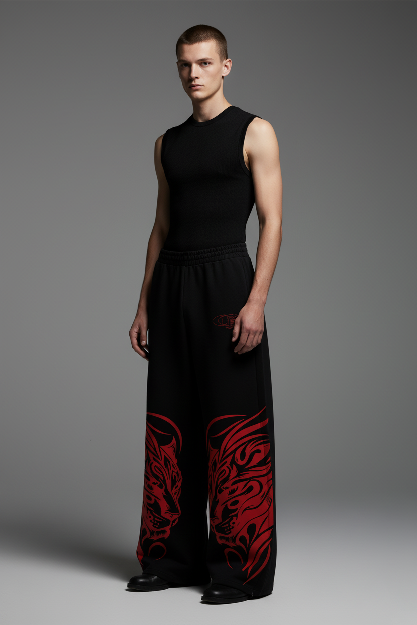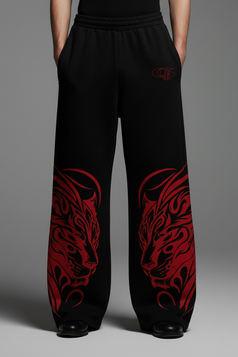 Red Shiro Unisex Straight Fit Baggy Pants