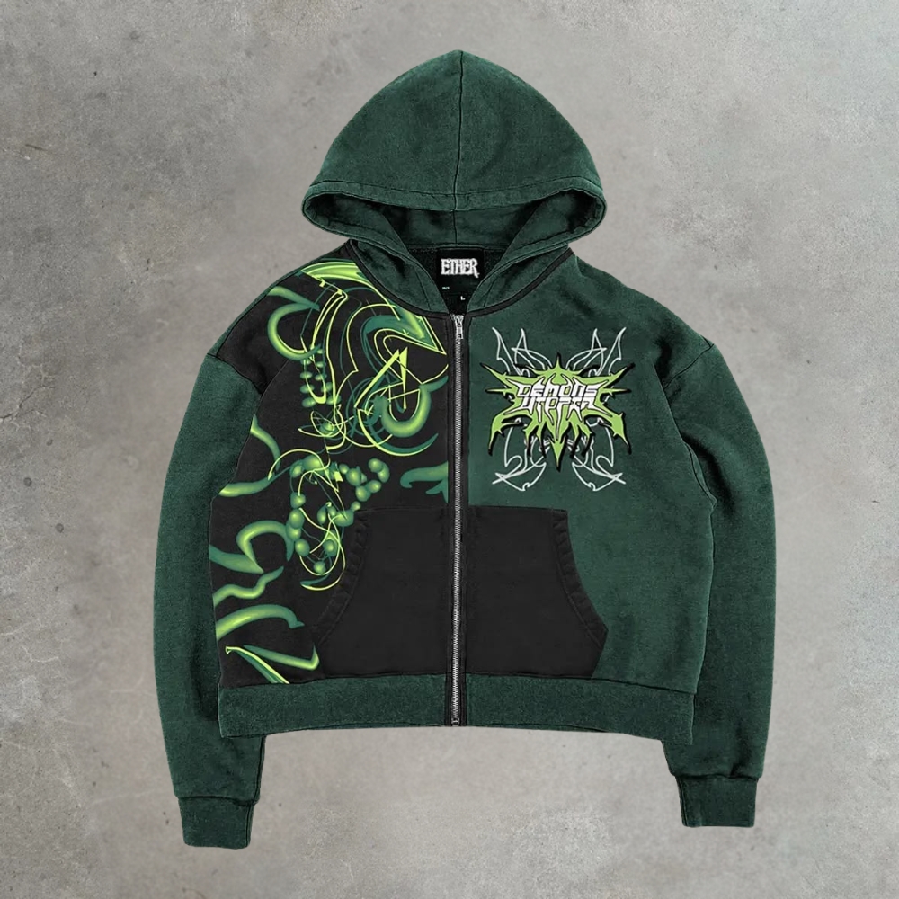 Gothic Neon Art Zip-Up Hoodie